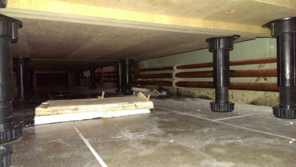 We overcame this by removing the dishwasher and the back from some of the cupboards and re-routing the pipework at low level, surface mounted on the partition wall, in the space between the floor and the bottom of the cupboards. This was extremely difficult but the outcome was really effective.