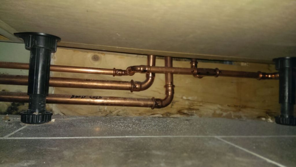 There were obstacles from the start as the pipework was recessed into the partition walls behind the kitchen cupboards and drawer units.